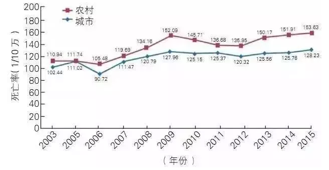 依據(jù)第六次人口普查數(shù)據(jù),2015年死于腦血管病的城鎮(zhèn)居民為85.36萬(wàn)人,農(nóng)村居民103.49萬(wàn)人?傮w上看農(nóng)村地區(qū)腦血管病死亡率高于城市地區(qū)。進(jìn)一步分析表明,我國(guó)腦卒中死亡率下降的主要因素可能有以下幾種:1、中國(guó)整體醫(yī)療保障的改善;2、臨床診斷和救治技術(shù)的進(jìn)步;3、城市居民腦卒中發(fā)病率下降;4、卒中防治知識(shí)水平的普遍提高。經(jīng)濟(jì)狀況與健康知識(shí)會(huì)影響患病率與死亡率:卒中患病率和不同教育水平呈負(fù)相關(guān)關(guān)系,即小學(xué)和以下文化卒中患病率最高,大專(zhuān)及以上最低。
