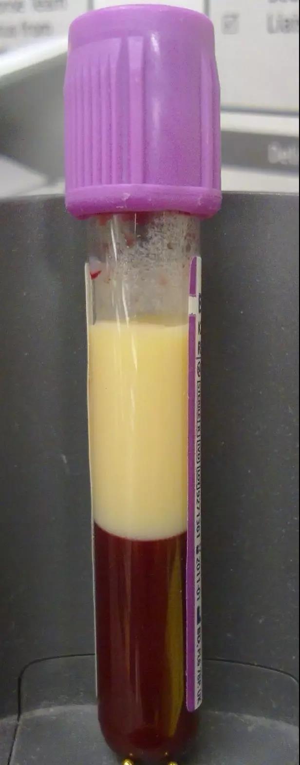 常有人將血脂與甘油三酯視為一體,實際上,甘油三酯(TG)僅是血脂的一種,血脂還包括其他物質(zhì)如膽固醇等。當(dāng)病人的血甘油三酯特別高(顆粒大、密度低的脂蛋白過多)時,血液會呈乳白色,將這種血靜置一段時間后,血的表面會形成厚厚的一層奶油樣物質(zhì),這便是化驗單上報告的所謂的“甘油三酯”。